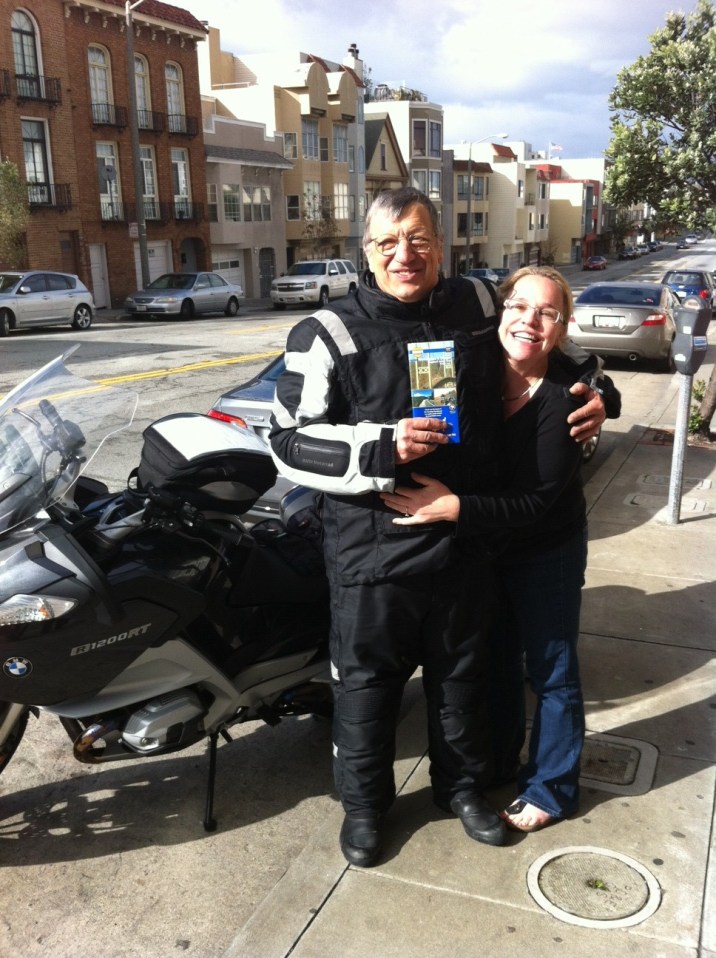 I charted my course to Santa Cruz via San Bernardino. First because I wanted to avoid Los Angeles. Second because I wanted to drive a scenic loop through the San Bernardino mountains that was shown on my Mad Map. I ran into a nice couple, Don and Jeanne, on Harleys (one each) at a gas station on the way. I wanted to take pictures and they were just leaving so I said would catch up with them. Don told me I was in for a beautiful ride and wished me warmth. I found out later why. I think I got lost because I didn’t see them again.